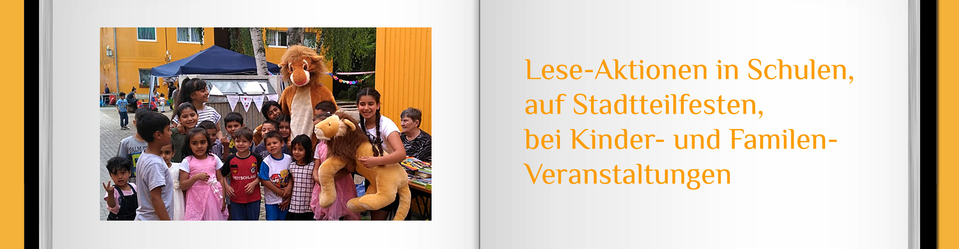 Wir sind in ganz Hamburg auf verschiedenen Veranstaltungen unterwegs, organisieren Lesungen von Kinderbuchautoren, unternehmen Ausflüge, verteilen gratis Bücher an leseinteressierte Kinder und und und…